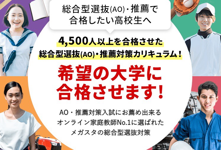 圧倒的な合格実績!総合型選抜・推薦選挙で優勝校を勝ち取るなら【オンラインのメガスタ】